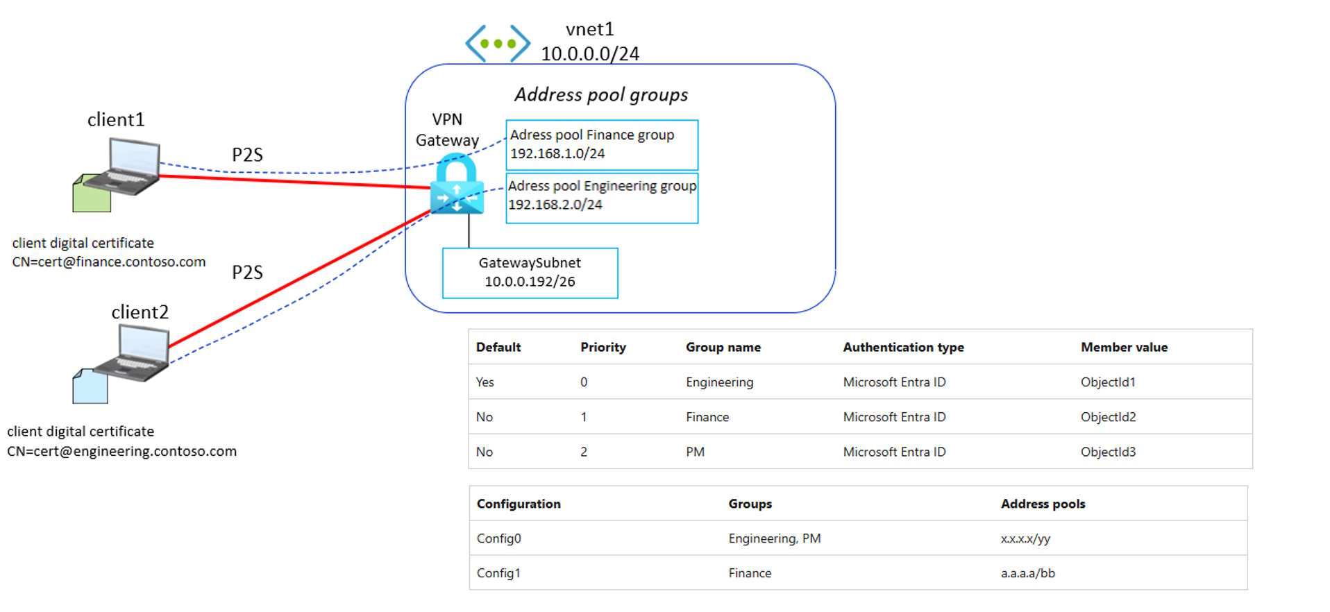 Azure introduce la possibilità di assegnare pool di indirizzi IP e gruppi di utenti per le connessioni VPN Point-to-Site (P2S), migliorando la segmentazione e la sicurezza.